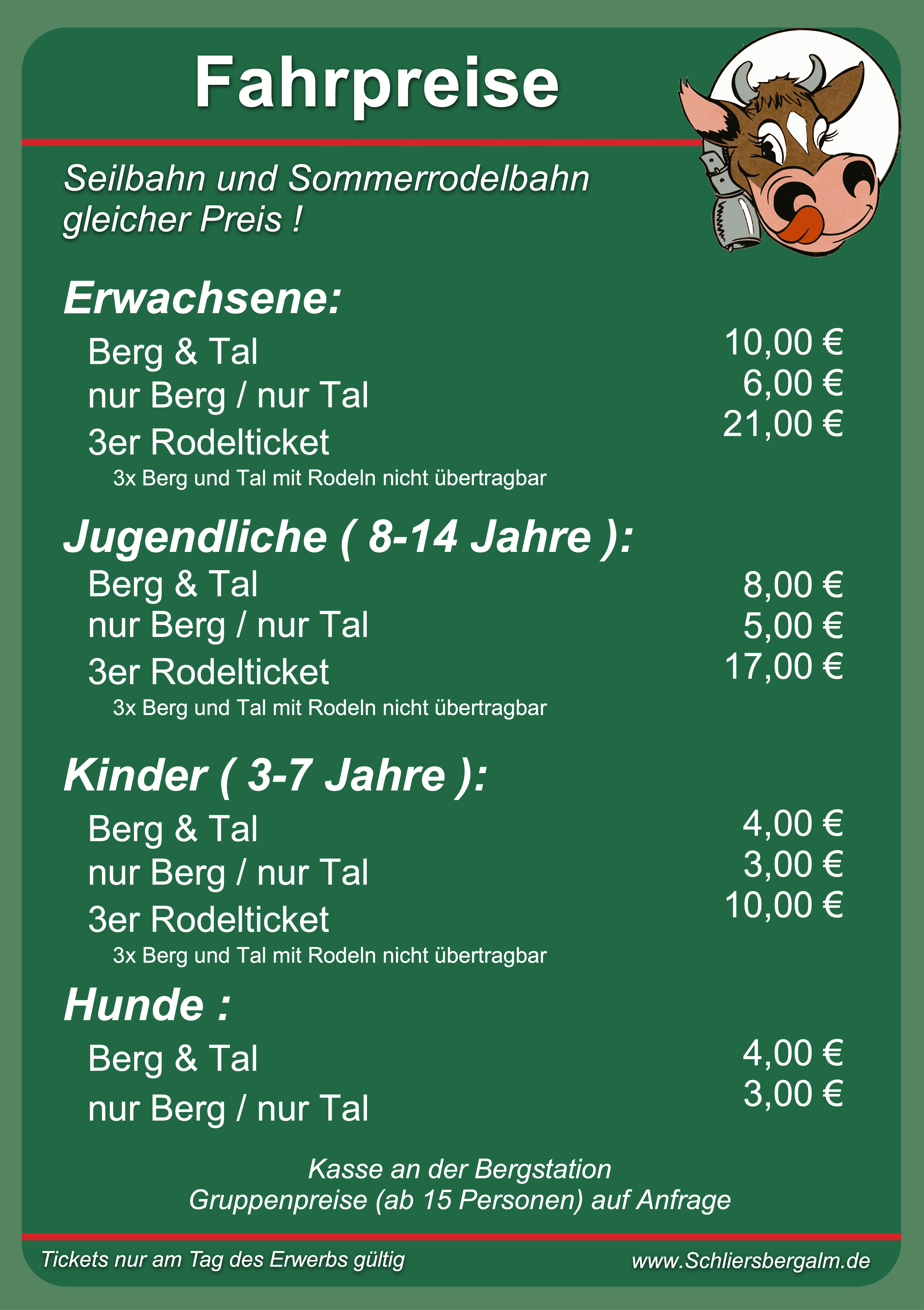 Fahrpreise und Online Ticket